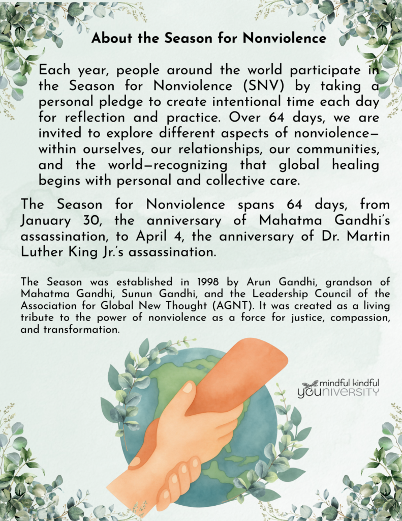 The Season for Nonviolence ~ Mindful, Kindful, Peaceful
